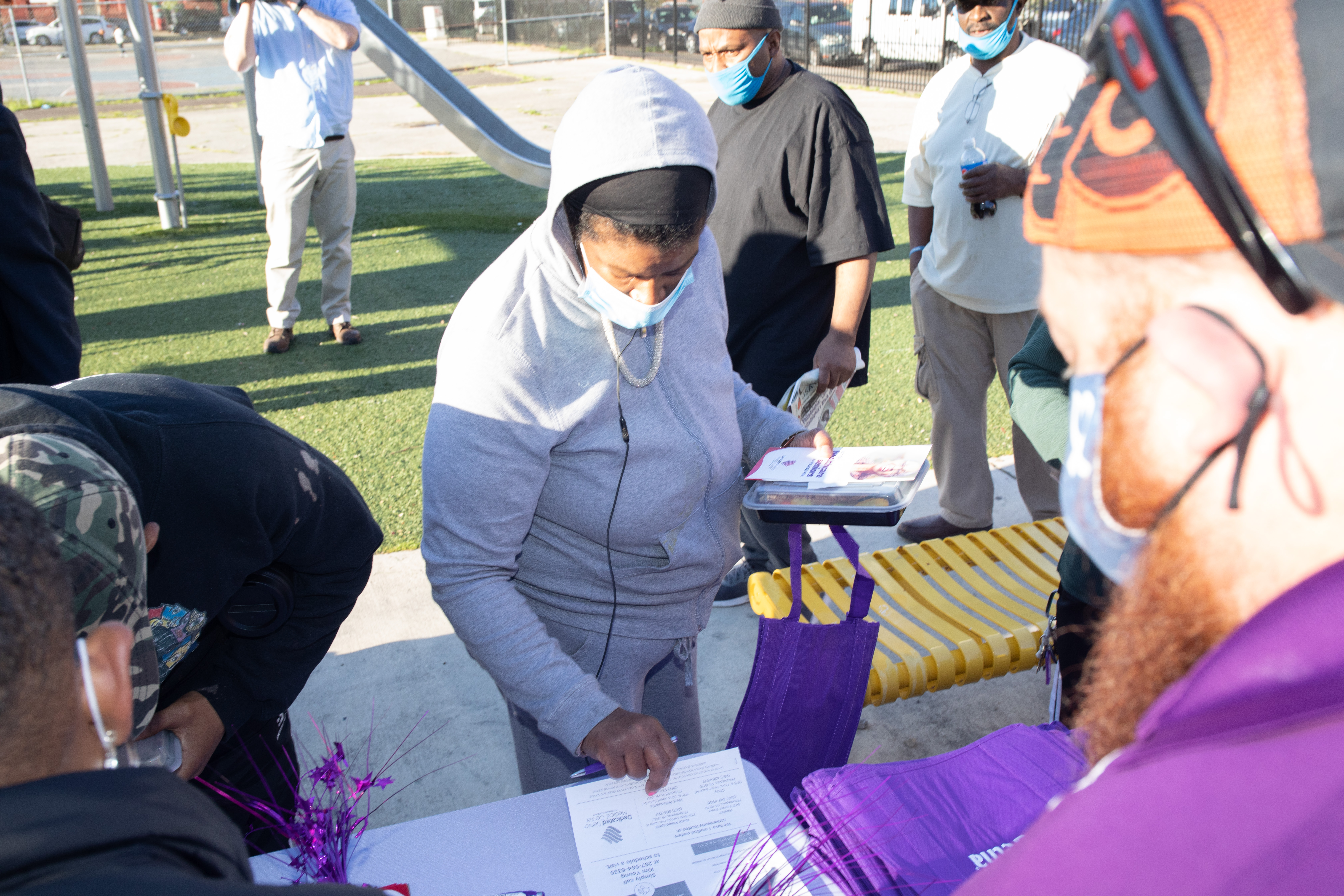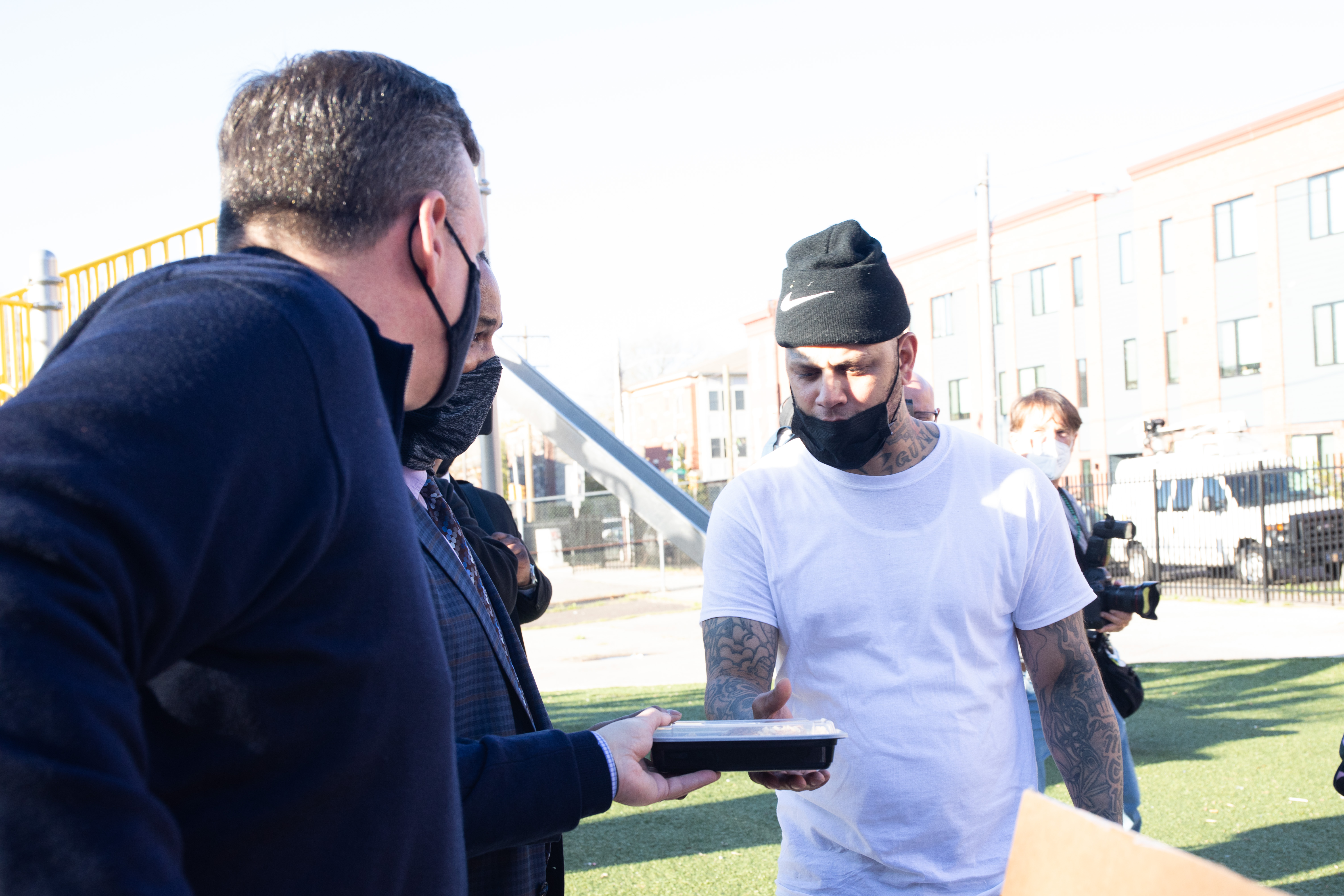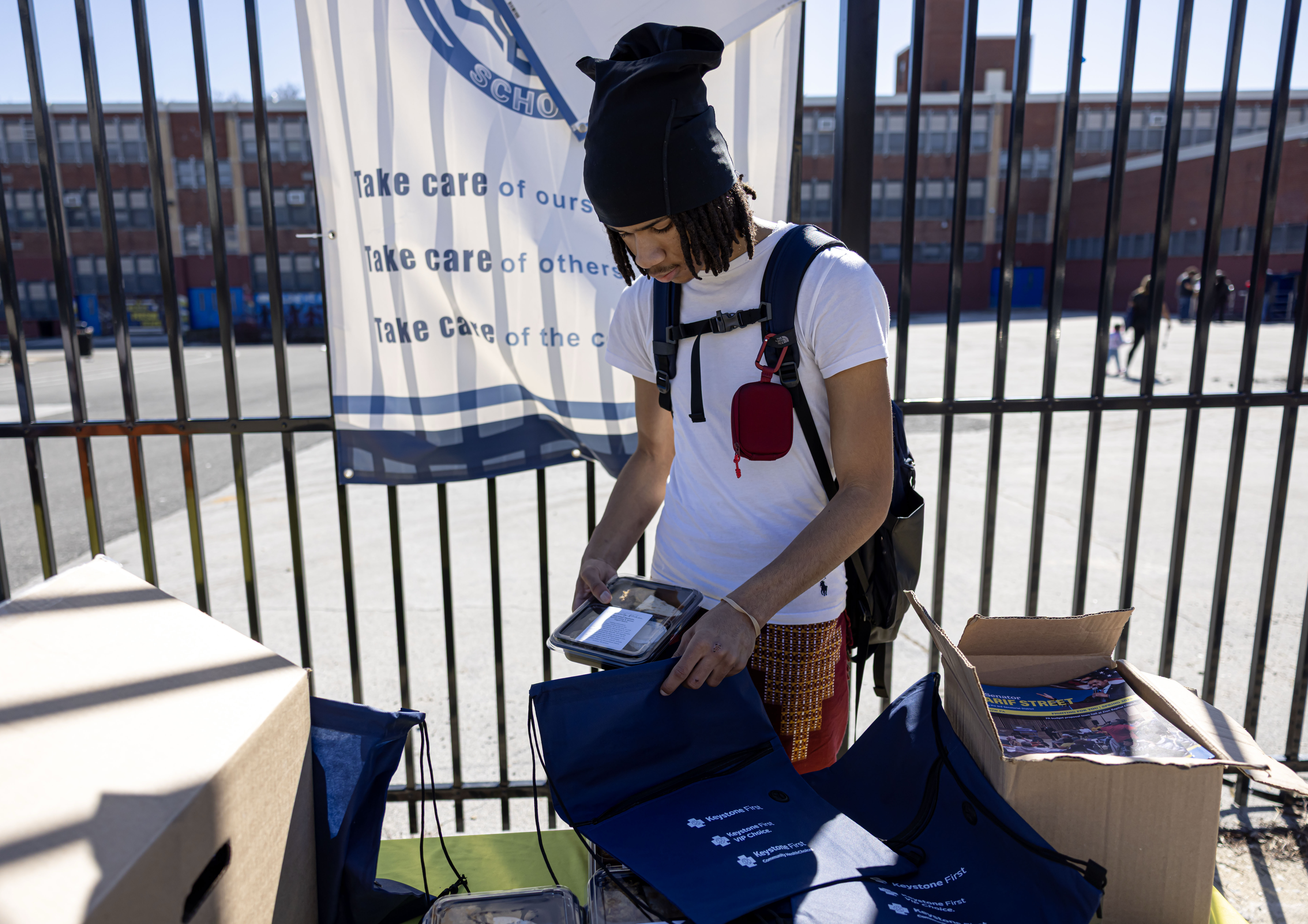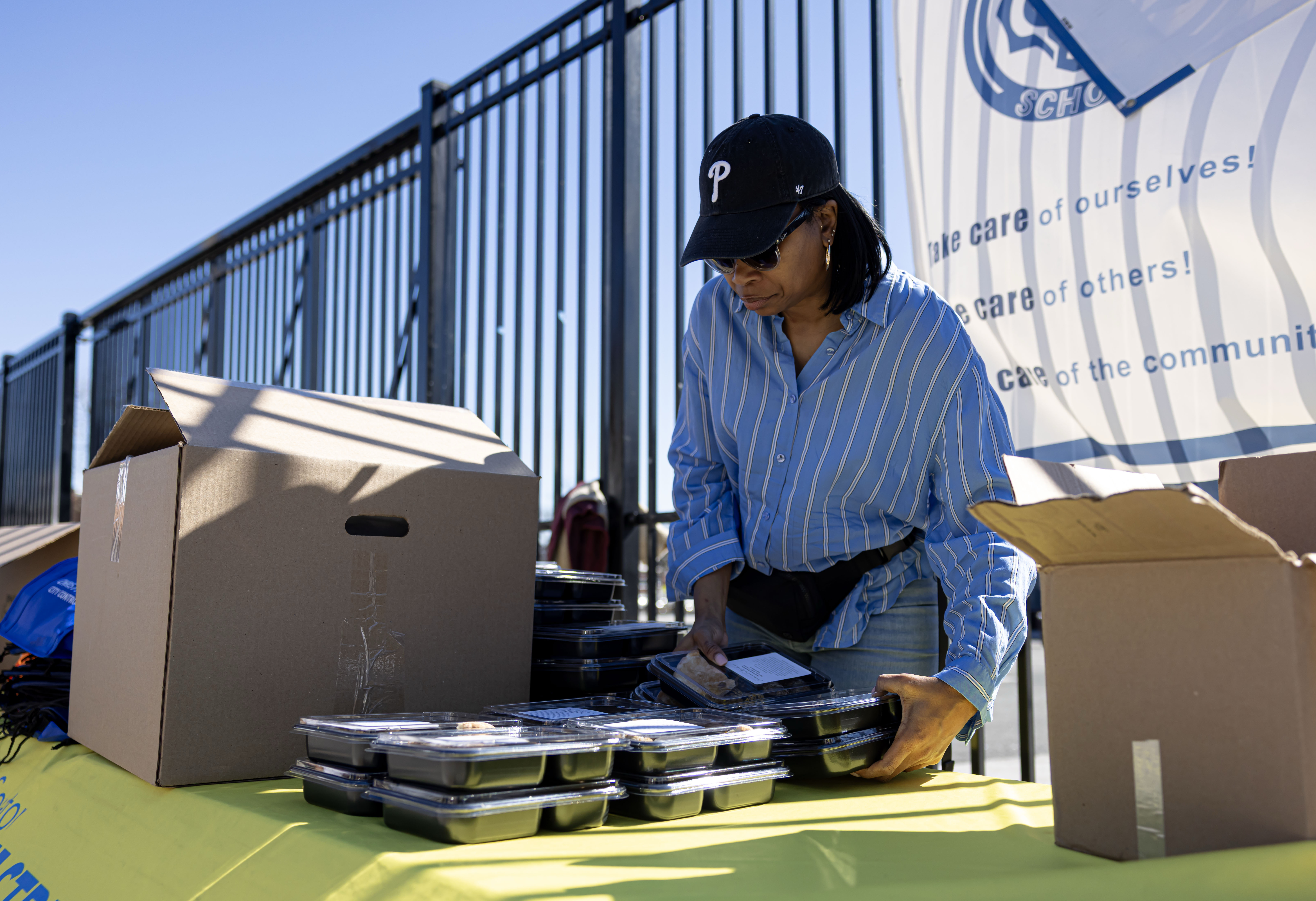 The organization gave food to families at the Penrose Recreation Center in North Philadelphia.