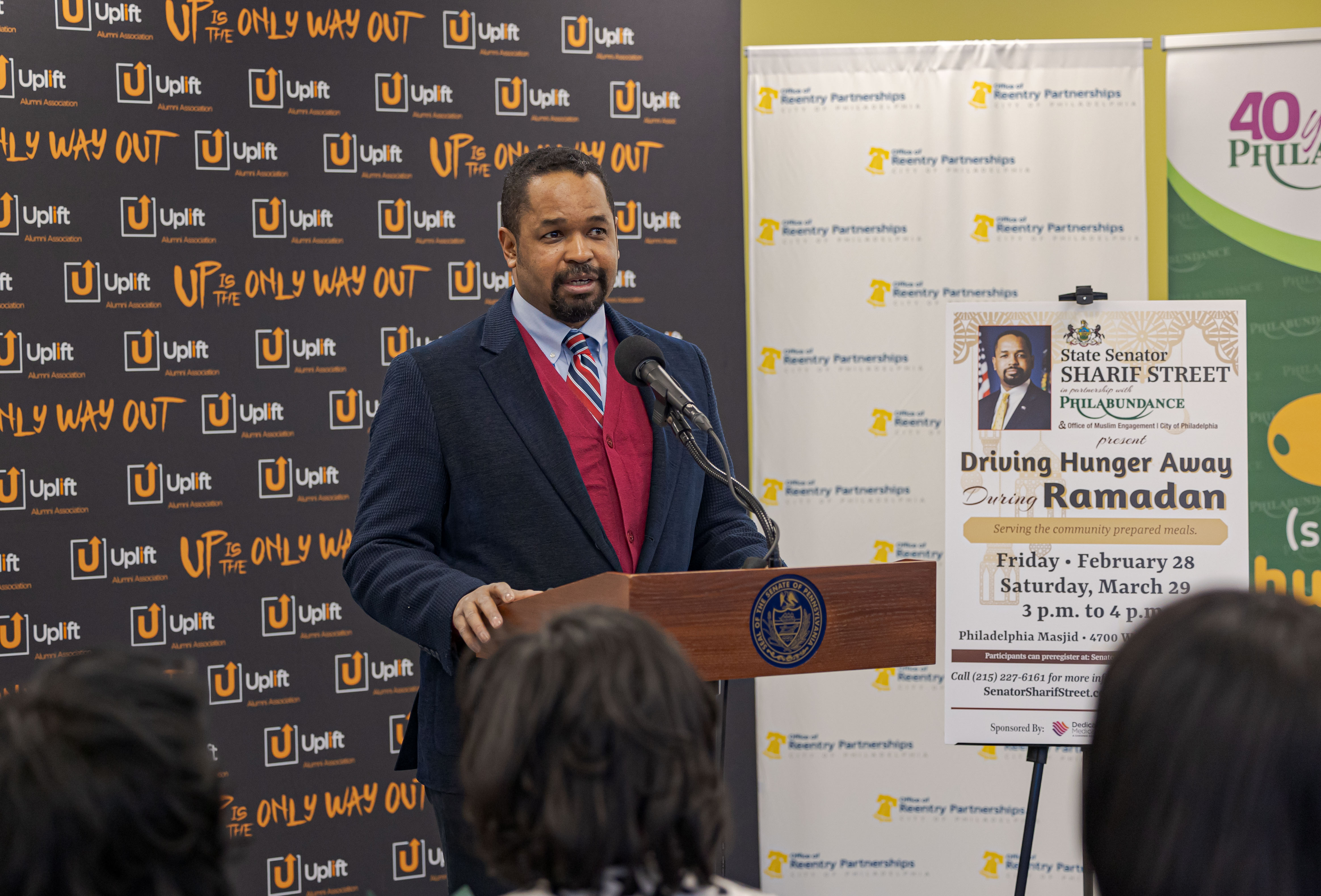Senator Sharif Street joined Mayor Cherelle Parker, Loree D. Jones-Brown, Philabundance CEO, and Quaiser Abdullah, Director of Muslim Engagement for the City of Philadelphia at the Office of Reentry Partnerships Neighborhood Resource Center/Uplift Solutions to announce the fifth annual 30-day food distribution during Ramadan that will feed 7,600 people.